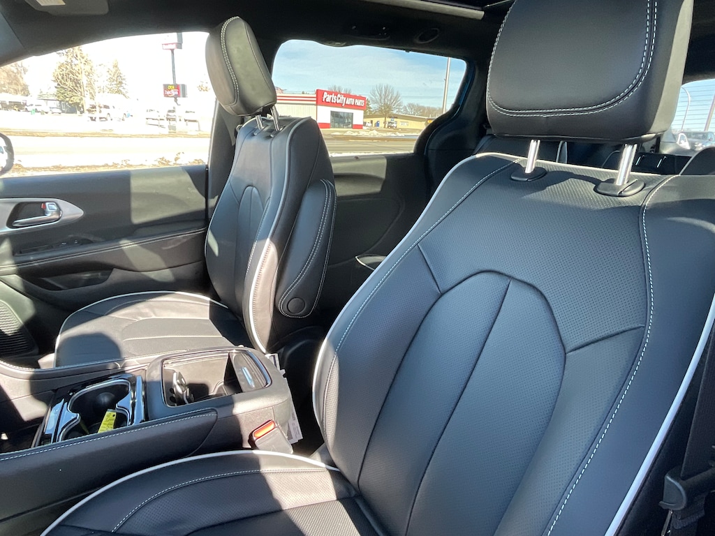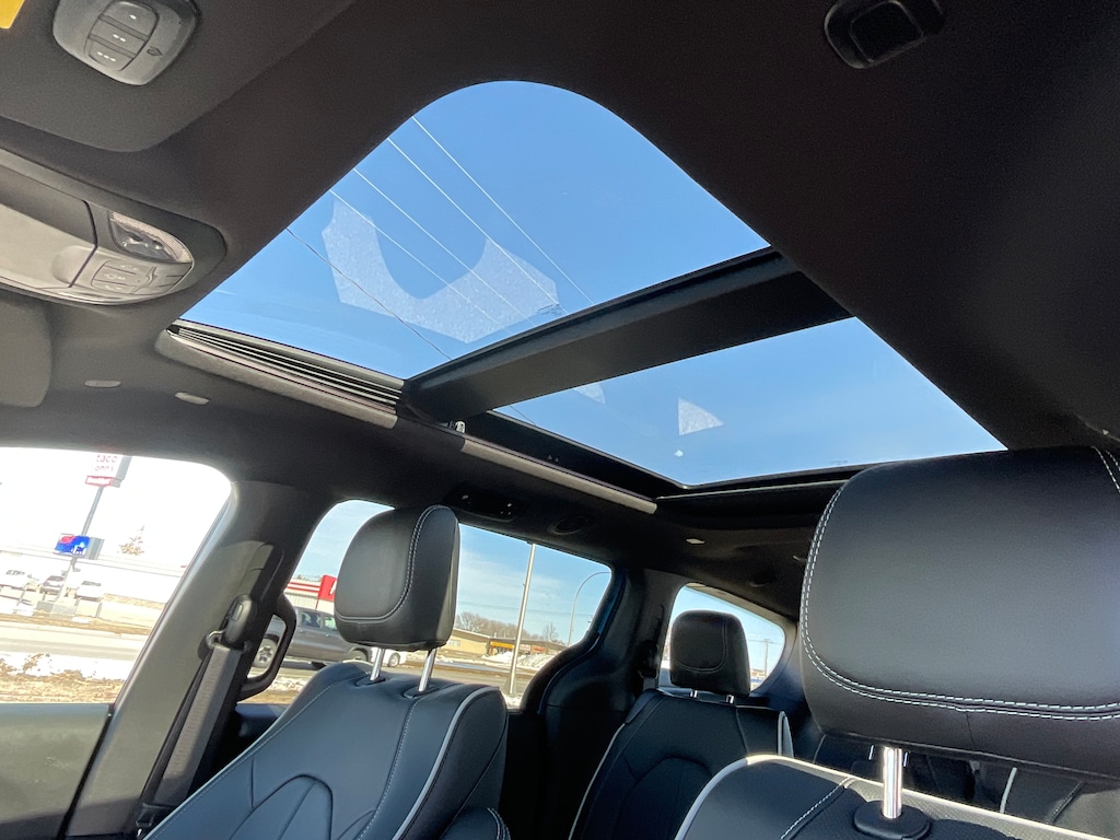 LOADED WITH GO IN ANY WEATHER ALL WHEEL DRIVE, NIGHT EDITION BLACK ACCENTS/ WHEELS, DUAL PANE POWER SUNROOF, POWER SLIDING SUN SHADE, HAND FREE POWER LIFTGATE, HEATED SEATS FIRST/ SECOND ROW, POWER ADVANCE AND RETURN DRIVER/ PASSGER SEATING, PREMIUM NAPPA LEATHER SEATING, AIR CONDITIONED SEATING, REMOTE START, HEATED STEERING WHEEL, 360 SURROUND VIEW CAMERA, POWER FOLD IN MIRRORS, ADAPTIVE CRUISE CONTROL WITH STOP, LANE SENSE WITH ACTIVE STEERING, PEDESTRIAN EMERGENCY BRAKING, PARK SENSE WITH STOP, FULL SPEED COLLISION WITH BRAKE ASSIST, ADAPTIVE CRUISE CONTROL WITH STOP, AUTOMATIC HIGH AND LOW BEAM CONTROL, BLIND SPOT AND CROSS PATH DETECTION, RAIN SENSE WIPERS, GPS NAVIGATION/ ANDROID AUTO/ APPLE CARPLAY/ SATELLITE/ AM/ FM/ HD RADIO/ AUX/ HD RADIO/ BLUE TOOTH/ VOICE COMMAND, MEDIA CENTER WITH 10.1 INCH TOUCH SCREEN, PREMIUM 13 SPEAKER INFINITY SOUND SYTEM, 506 WATT AMPLIFER, LEATHER WRAPPED STEERING WHEEL WITH AUDIO CONTROLS, WIRELESS CHARGING PAD, UNIVERSAL GARAGE DOOR OPENER, 12 WAY POWER DRIVERSEATING, 10 WAY PASSENGER SEATING, STOW AND GO SEATING 2ND/ 3RD ROW. IN VEHICLE STORAGE ROOM FOR 4'X8' STORAGE, PREMIUM LED FOG LAMPS, PREMIUM LED HEAD LAMPS, STOW IN PLACE LUGGAGE RACK, ENGINE BLOCK HEATER, ALL SPEED TRACTION CONTROL, 3600 POUND TOW PACKGE, AND MUCH MORE !!!! STOP IN, TEST DRIVE AND FALL IN LOVE WITH OUR SMALL TOWN AND LITCHFIELD CHRYSLER'S LOW, LOW PRICES ........ PLEASE CALL This vehicle won't be on the lot long!