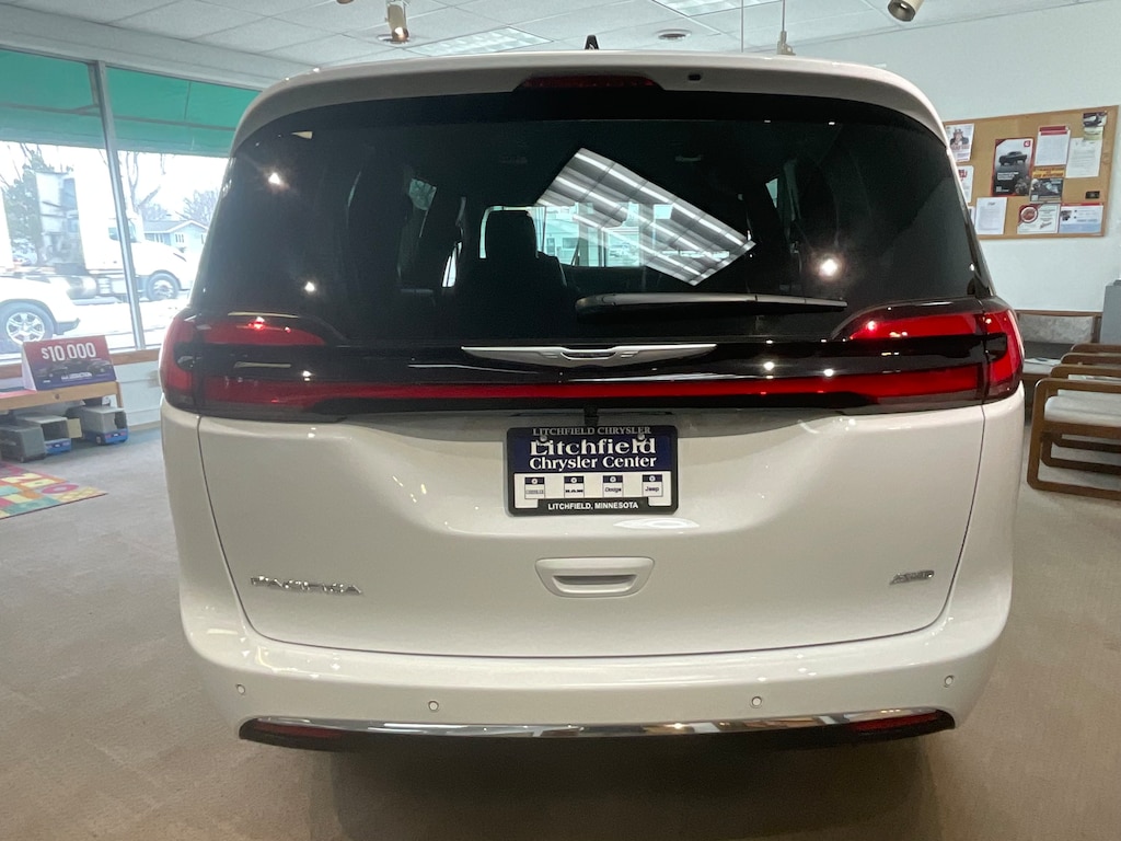 LOADED WITH GO ANYWHERE IN ANY CONDITIONS ALL WHEEL DRIVE, HEATED SEATS FIRST/ SECOND ROW, REMOTE START, HEATED STEERING WHEEL, 360 SURROUND VIEW CAMERA, ADAPTIVE CRUISE CONTROL WITH STOP, LANE SENSE WITH ACTIVE STEERING, PEDESTRIAN EMERGENCY BRAKING, PARK SENSE WITH STOP, FULL SPEED COLLISION WITH BRAKE ASSIST, ADAPTIVE CRUISE CONTROL WITH STOP, AUTOMATIC HIGH AND LOW BEAM CONTROL, BLIND SPOT AND CROSS PATH DETECTION, RAIN SENSE WIPERS, ANDROID AUTO/ APPLE CARPLAY/ SATELLITE/ AM/ FM/ HD RADIO/ AUX/ NAVIGATION/ BLUE TOOTH/ VOICE COMMAND, MEDIA CENTER WITH 10.1 INCH TOUCH SCREEN, LEATHER WRAPPED STEERING WHEEL WITH AUDIO CONTROLS, UNIVERSAL GARAGE DOOR OPENER, 12 WAY POWER DRIVER/ PASSENGER SEATING, STOW AND GO SEATING 2ND/ 3RD ROW. IN VEHICLE STORAGE ROOM FOR 4'X8' STORAGE, PREMIUM LED FOG LAMPS, PREMIUM LED HEAD LAMPS, STOW IN PLACE LUGGAGE RACK, ENGINE BLOCK HEATER, AND MUCH MORE !!!! STOP IN, TEST DRIVE AND FALL IN LOVE WITH OUR SMALL TOWN AND LITCHFIELD CHRYSLER'S LOW, LOW PRICES ........ PLEASE CALL