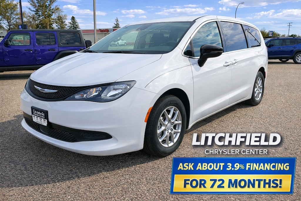 ENJOY HEATED STEERING WHEEL, SEATING FOR 7, HEATED SEATS, REMOTE START, APPLE CAR PLAY/ ANDROID AUTO/ SATELLITE/ AM/ FM/ AUX/ BACK UP CAMERA/ BLUE TOOTH/ MEDIA CENTER WITH 10.1 INCH TOUCH SCREEN, STEERING WHEEL AUDIO CONTROLS, POWER SLIDING DOORS, POWER LIFTGATE, PROXIMITY KEYLESS ENTRY, STOW AND GO SECOND AND THIRD ROW SEATING, ADAPTIVE CRUISE CONTROL WITH STOP AND GO, FULL SPEED COLLISION WARNING PLUS STOP ASSIST, BLIND SPOT AND CROSS PATH DETECTION, LANE DEPARTURE WARING PLUS CORRECTION, PEDESTRAIN EMERGENCY BRAKING, HILL START ASSIST, RAIN SENSE WIPERS, THREE ZONE AUTOMATIC CLIMATE CONTROL, 2ND ROW WINDOW SHADES, SECOND ROW IN FLOOR STORAGE BINS, AUTOMATIC HEADLAMPS, 12 WAY POWER DRIVER'S SEAT, ENGINE BLOCK HEATER, ALL SPEEED TRACTION CONTROL, AND MUCH MORE !!!! STOP IN, TEST DRIVE AND FALL IN LOVE WITH OUR SMALL TOWN AND LITCHIELD CHRYSLER'S LOW, LOW PRICES ........... PLEASE CALL 800-642-1837. If you've been looking for just the right vehicle, then stop your search right here. Check out this 2026!