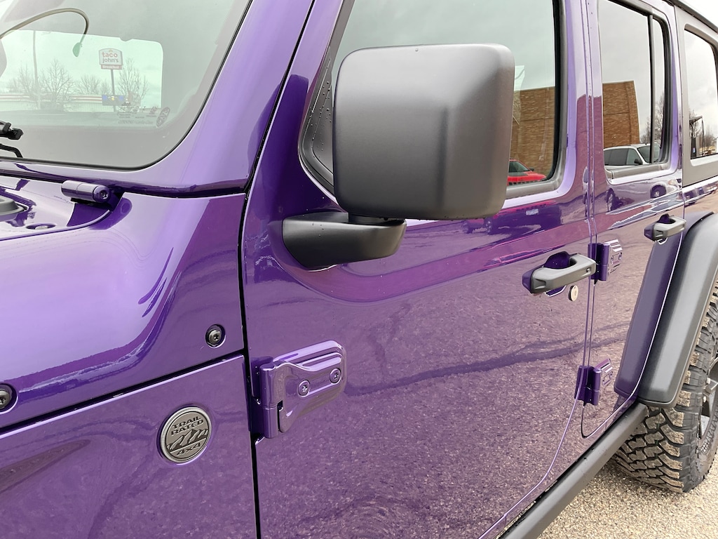 ENJOY 6 SPEED MANUAL TRANSMISSION, HEATED SEATS, HEATED STEERING WHEEL, TOW PACKAGE, T-TOPPS WITH REMOVABLE THREE PIECE HARD TOP, HARD TOP HEADLINER, REMOVABLE DOORS, FOLD DOWN WINDSHIELD, ANDROID AUTO/ APPLE CARPLAY/ BLUETOOTH/ VOICE COMMAND/ SATELLITE/ AM/ FM/ AUX/ BACK UP CAMERA/ MEDIA CENTER WITH 12.3 INCH TOUCH SCREEN, ALPINE PREMIUM SOUND SYSTEM WITH SUBWOOFER, 506 WATT AMPLIFIER, LEATHER WRAPPED STEERING WHEEL WITH AUDIO CONTROLS, PREMIUM LED FOG LAMPS, PREMIUM LED HEAD LAMPS, ILLUMINATED VANITY MIRRORS, DUAL ZONE AUTOMATIC CLIMATE CONTROL, PROXIMITY KEYLESS ENTRY, SKID PLATE PACKAGE, TOW PACKAGE, DEEP DARK TINT WINDOWS, FORWARD COLLISION WARNING, ADAPTIVE CURISE CONTROL WITH STOP AND GO, TRU-LOCK REAR AXLE, HD DANA 44 FRONT AXLE, OFF ROAD PLUS MODE, BLACK PAINTED WHEELS, AND MUCH MORE !!!! STOP IN, TEST DRIVEV AND FALL IN LOVE WITH OUR SMALL TOWN AND LITCHFIELD CHRYSLER'S LOW, LOW PRICES ..... PLEASE CALL 800-642-1837. This vehicle won't be on the lot long!