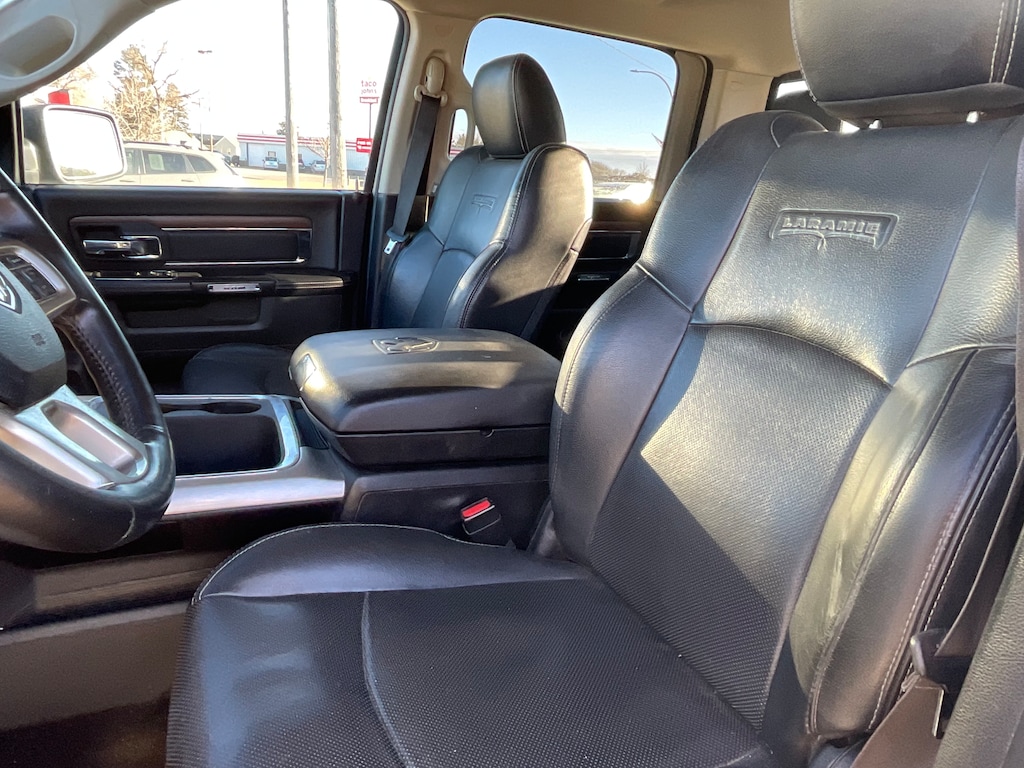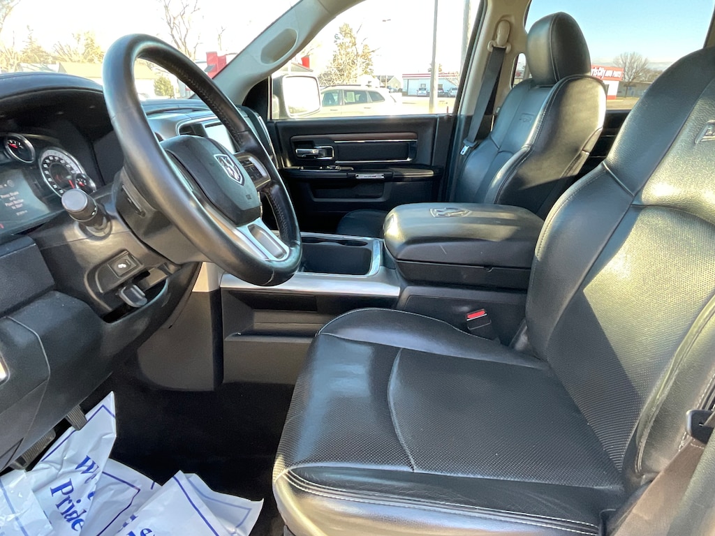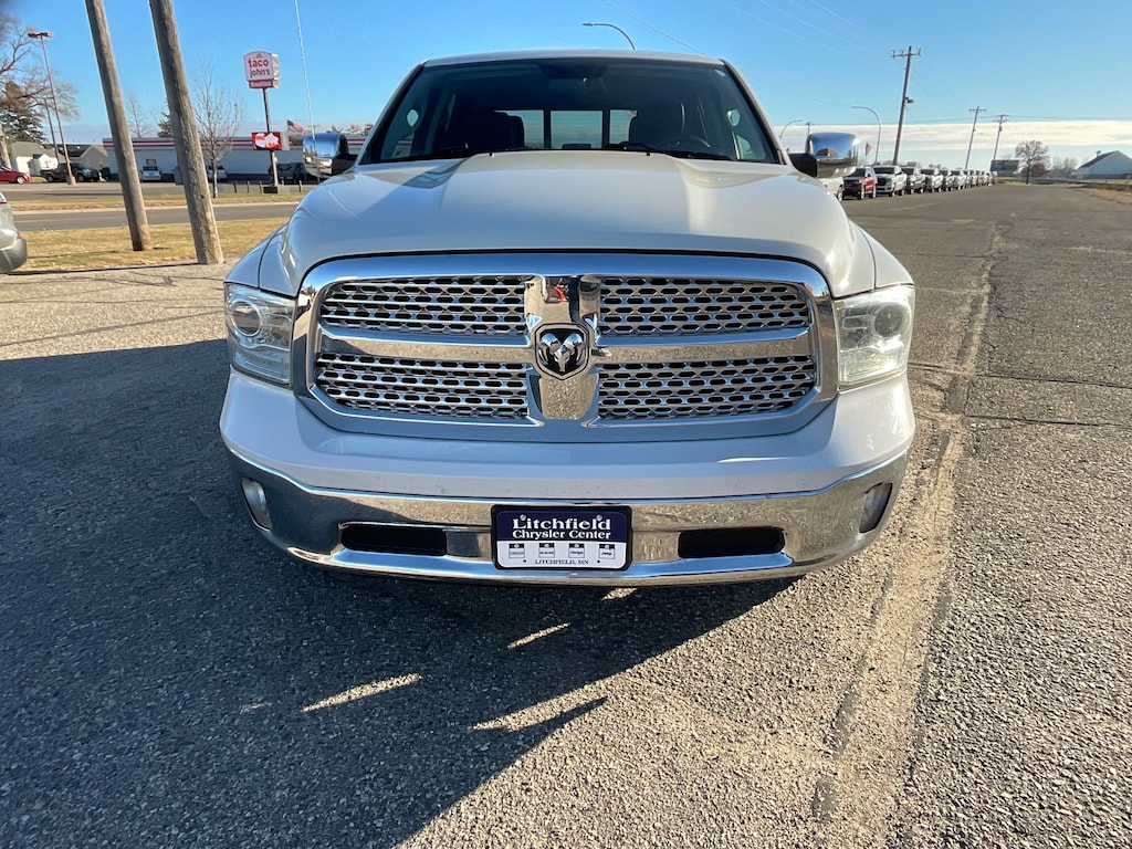 ENJOY THIS TOP QUALITY TRADE-IN LOADED WITH REMOTE START, HEATED LEATHER BUCKET SEATS, AIRCONDITIONED SEATING, BLUETOOTH/ VOICE COMMAND/ NAVIGATION/ SATELLITE/ AM/ FM/ HD RADIO/ BACK UP CAMERA/ MEDIA CENTER WITH 8.4 INCH TOUCH SCREEN, PREMIUM 9 SPEAKER ALPINE SOUND SYSTEM WITH SUB WOOFER, 506 WATT AMPLIFIER, AUTOMATIC HEAD LAMPS, AUTOMATIC HIGH AND LOW BEAM HEAD LMAPS, ILLUMINATED VANITY MIRRORS, PREMIUM FOG LAMPS, POWER SLIDING REAR WINDOW, UNIVERSAL GARAGE DOOR OPENER, ANTI SPIN REAR AXLE, 8500 POUND TOW PACKAGE, IN FLOOR STORAGE, FOLD FLAT STORAGE FLOOR, 10 WAY POWER DRIVER'S SEAT, HEATED SECOND ROW SEATING, POWER FOLDING MIRRORS, 32 GALLON FUEL TANK, IN DASH TRAILER BRAKE CONTROL, SPRAY IN BED LINER, ROLL UP BOX COVER, ENGINE BLOCK HEATER, 20 INCH CHROME CLAD WHEELS, AND MUCH MORE !!!! STOP IN, TEST DRIVE AND FALL IN LOVE WITH OUR SMALL TOWN AND LITCHFIELD CHRYSLER'S LOW, LOW PRICES ........ PLEASE CALL 800-642-1837. Introducing the 2016 Ram 1500!